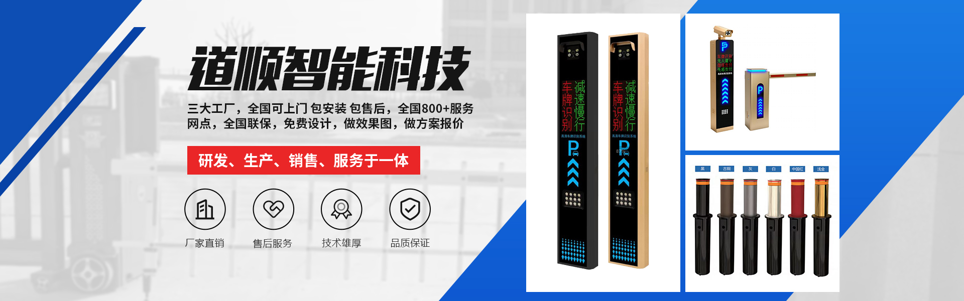 道順智能創立于2012年,是一家專業從事智慧停車解決方案、智慧社區解決方案和設備軟件與藍牙車牌識別、藍牙道閘、藍牙廣告道閘藍牙廣告門、藍牙通道閘、藍牙門禁梯控、人臉識別等藍牙系列多元化安防產品硬件研發、生產、銷售、服務于一體的 高新技術企業。